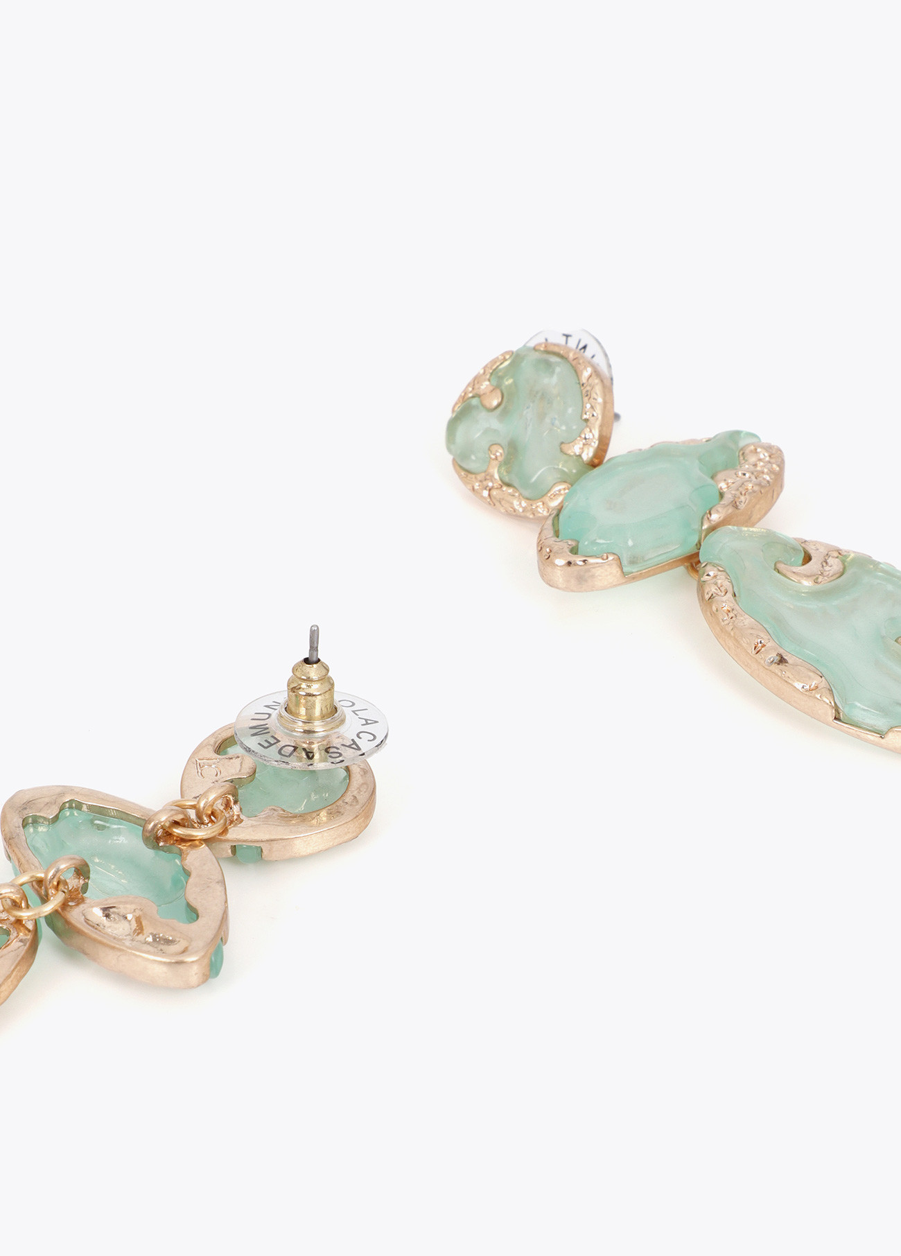 Maxi brincos metálicos e laqueados com design vanguardista. Combinam metal polido com detalhe laqueado verde. Fecho de parafuso para maior segurança. Perfeitos para ocasiões especiais.