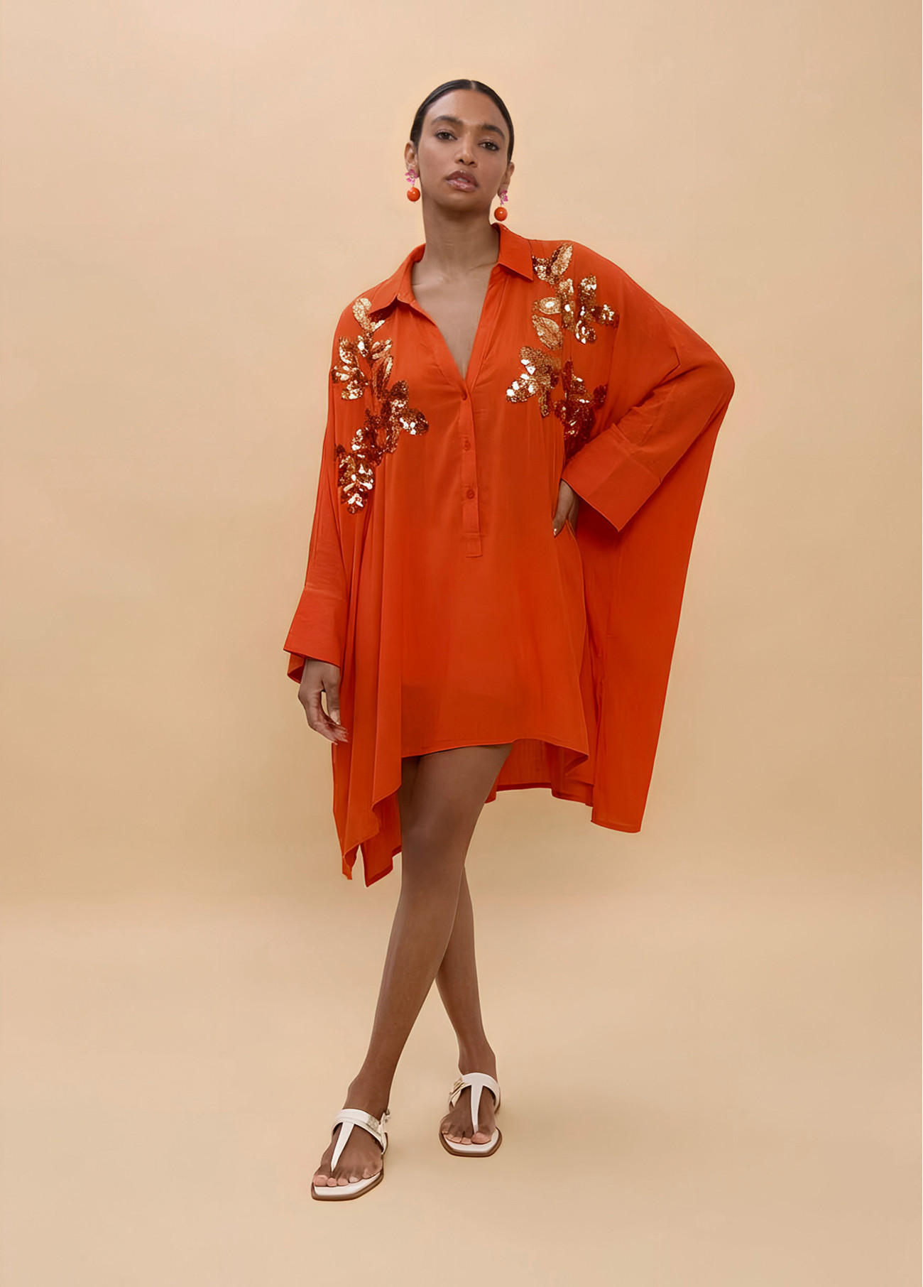 Camisa oversized em tecido leve com detalhes em tom que conferem um toque elegante. Apresenta corte fluido, mangas longas e fechamento frontal por botões. Ideal para um look moderno e descontraído.