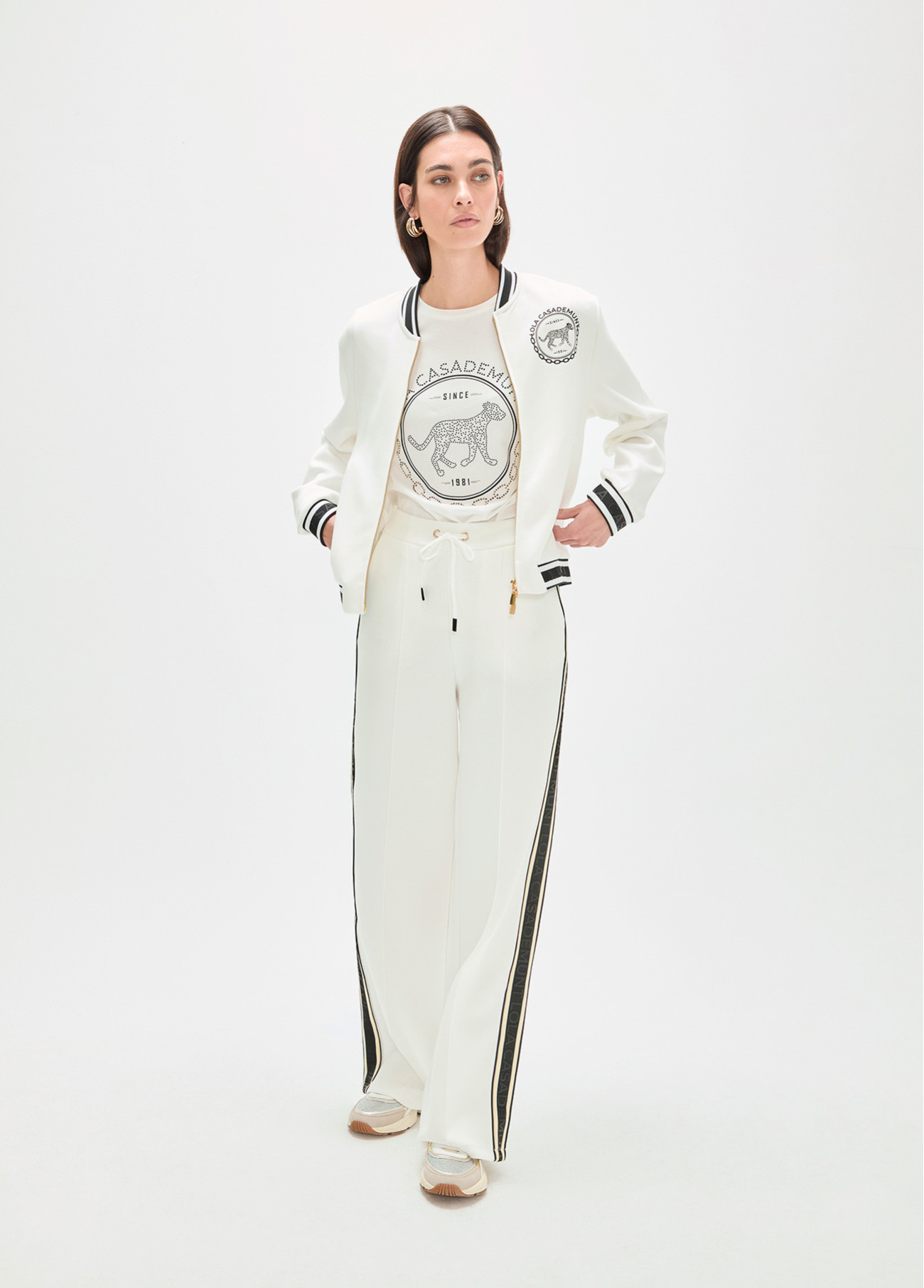 Calças confeccionadas em tecido scuba de alta qualidade com faixas laterais contrastantes. Design moderno e confortável, cintura elástica para um ajuste perfeito. Ideal para um visual casual com estilo. Combine com suas peças favoritas para um conjunto versátil e moderno.