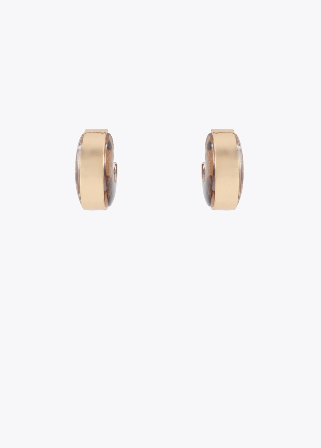 Argolas elegantes com design combinado de metal dourado e detalhes em animal print. Um acessório moderno e sofisticado. Fecho de tarraxa para maior segurança. Combina estilo clássico com um toque selvagem.