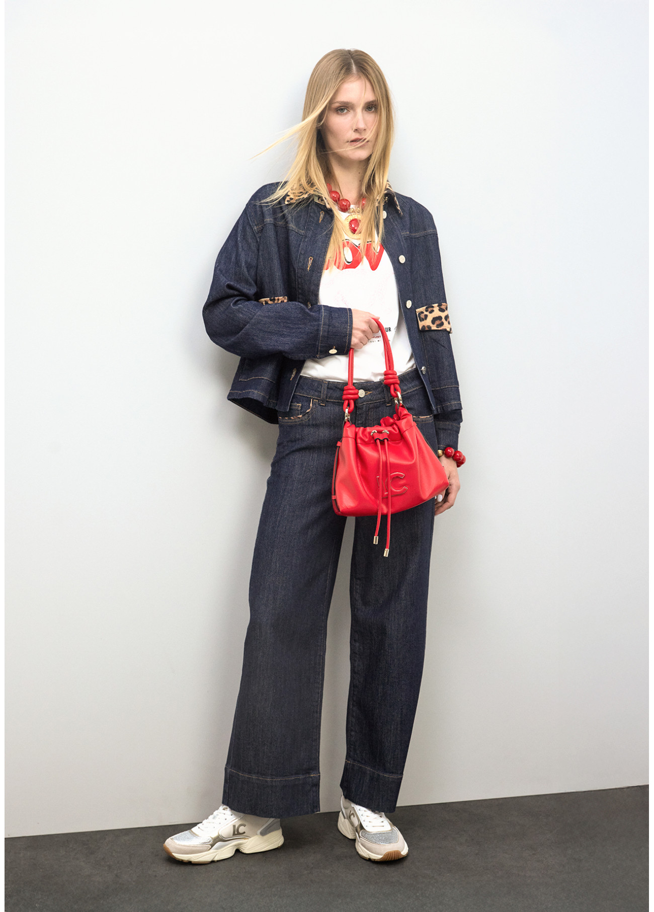 Elegante bolsa transversal vermelha com forro e fecho ajustável. Logotipo LC em relevo. Alça versátil e destacável para múltiplos estilos de uso. Ideal para looks modernos.