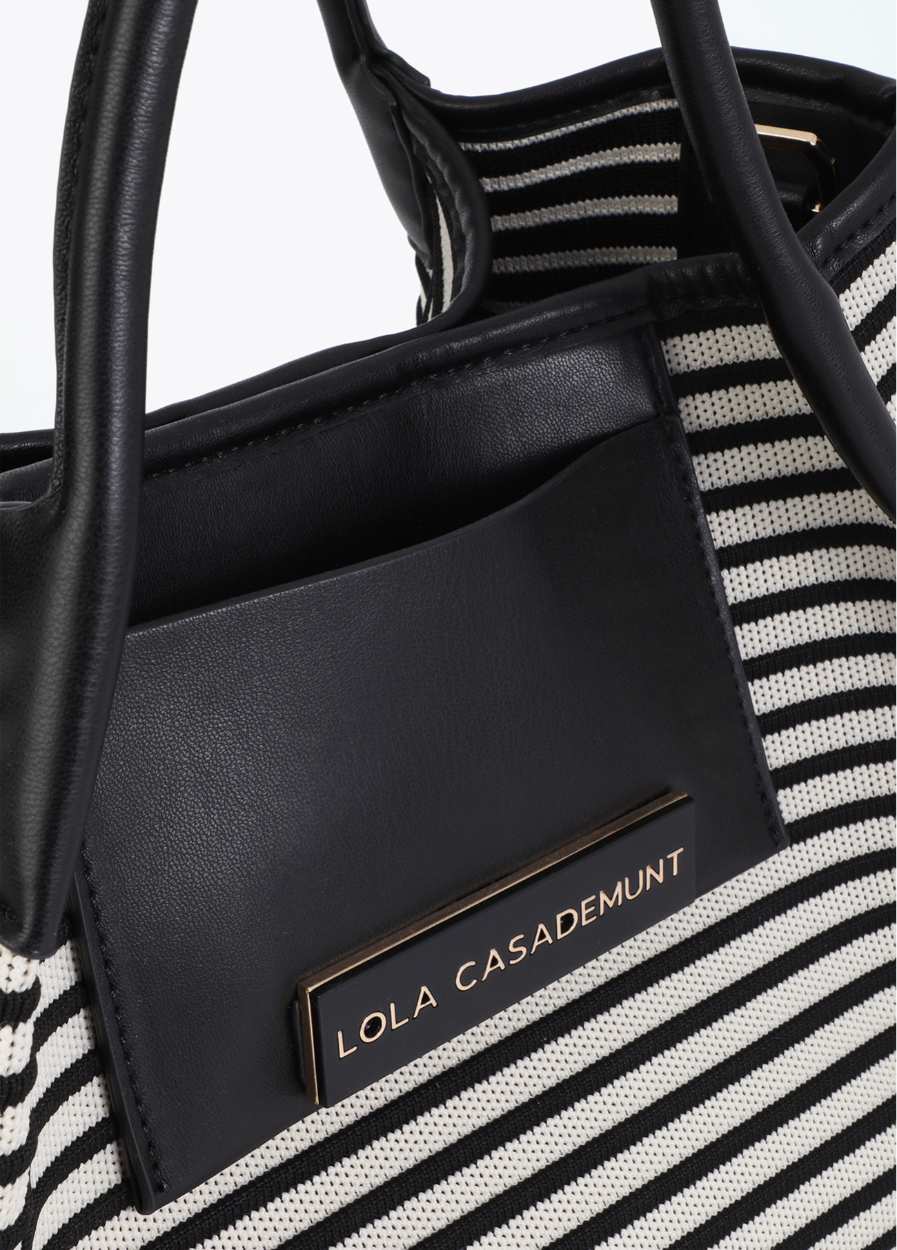 Shopper confeccionado em tecido listrado com detalhes em efeito de pele. Interior espaçoso com fechamento de zíper. Perfeito para carregar seus essenciais com estilo. Alças duplas confortáveis para levar ao ombro.
