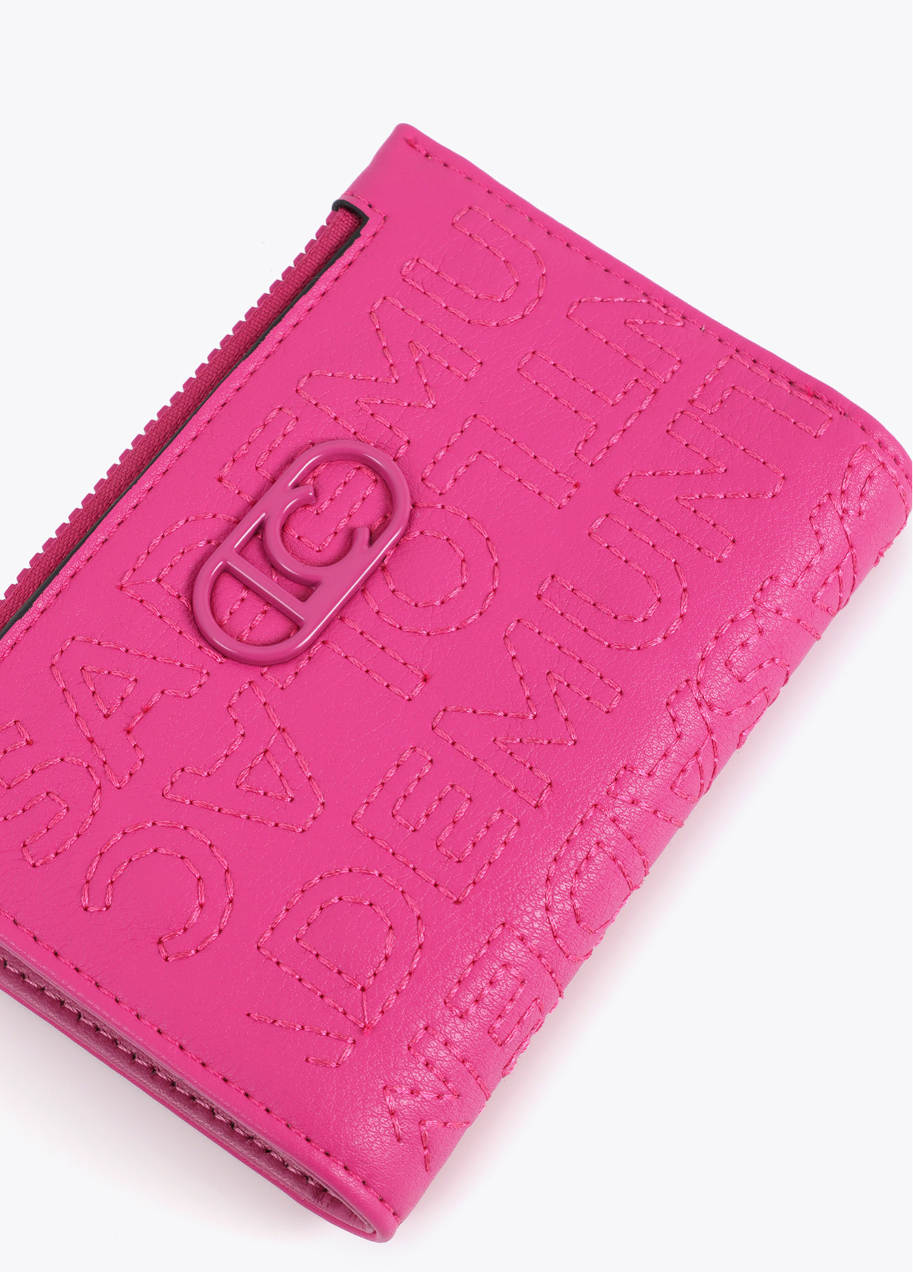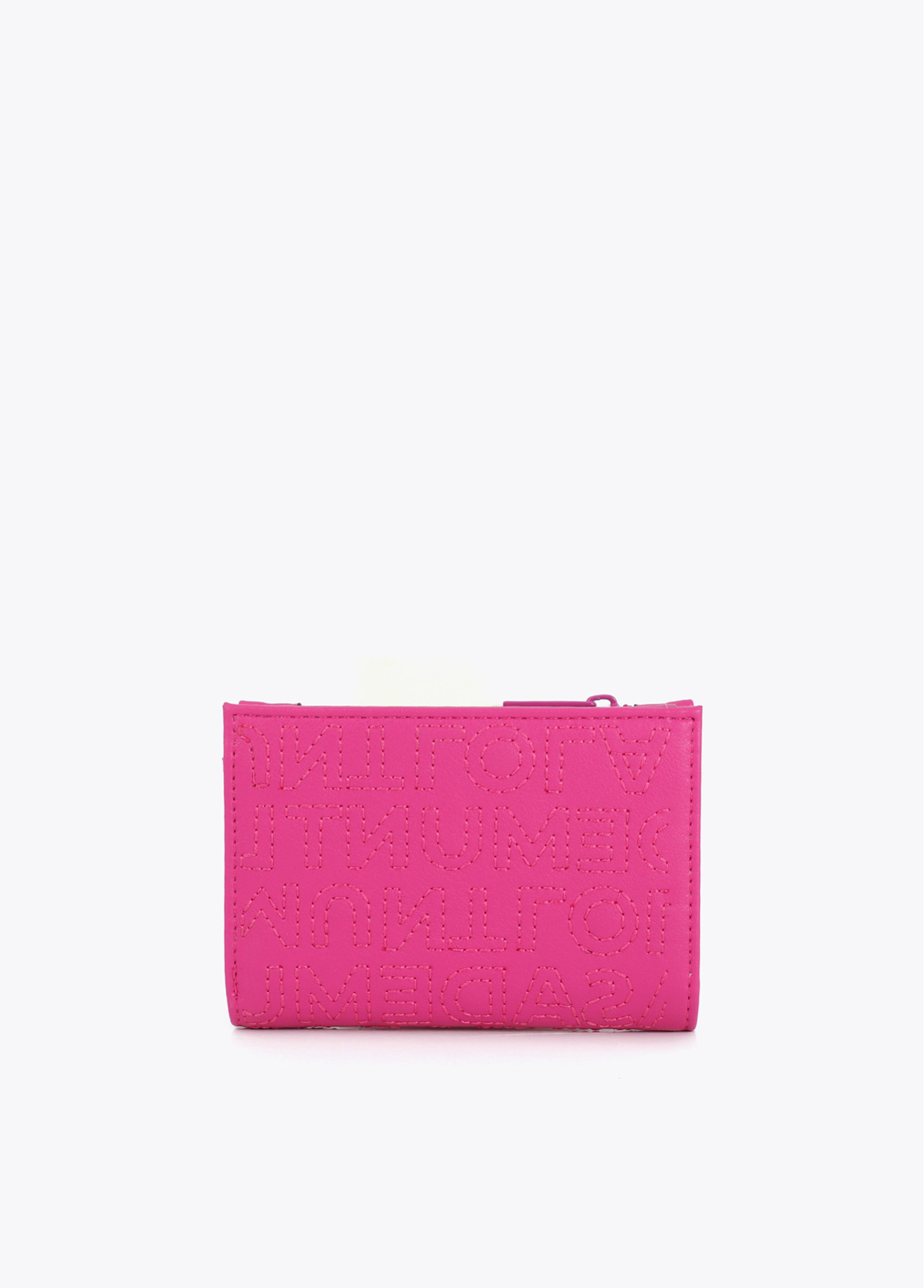Carteira de cor vibrante com logo costurado na parte frontal. Compartimentos para cartões e bolso de moedas com zíper. Ideal para manter tudo organizado com estilo.
