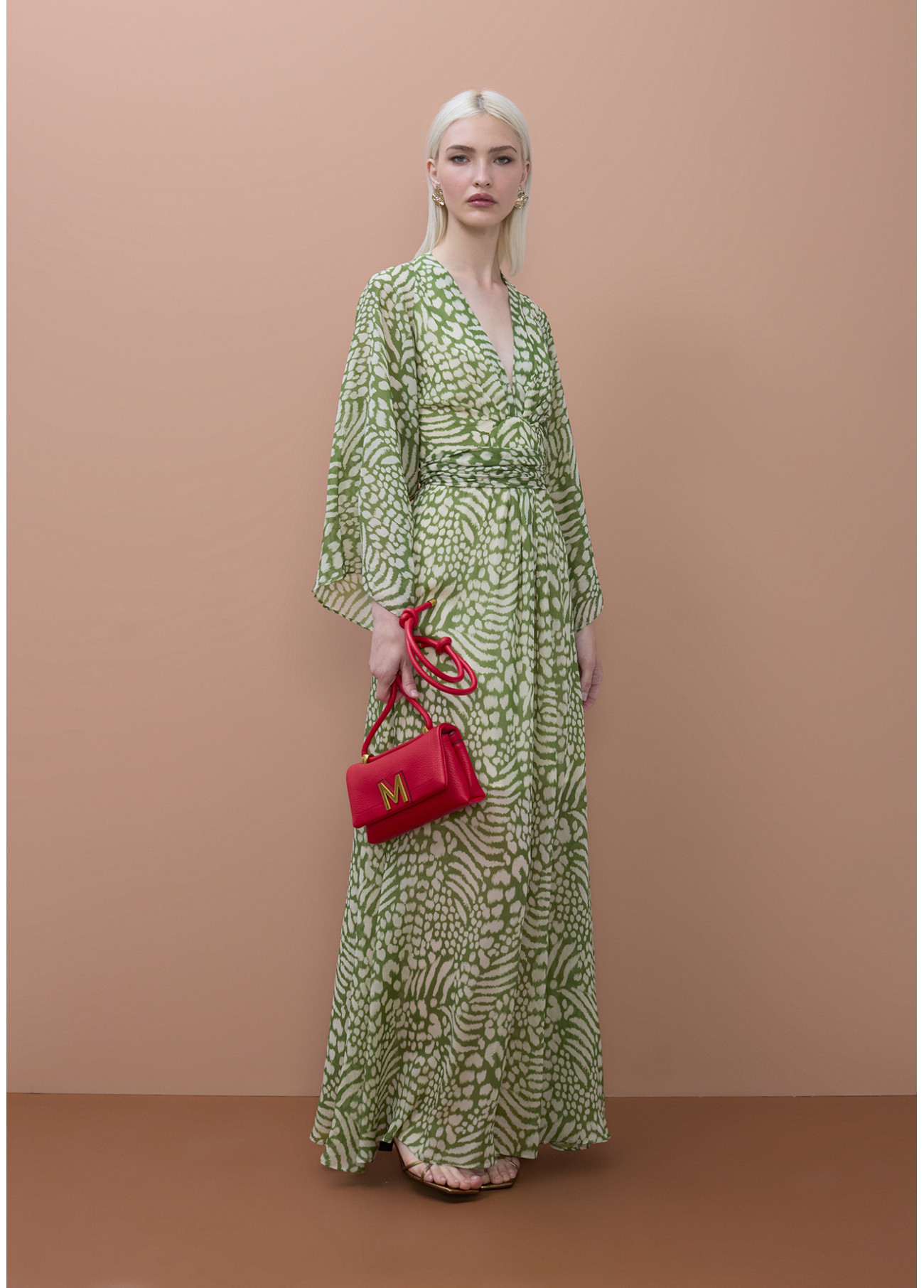Vestido longo com estampa animal e manga larga, ideal para destacar. Ajuste personalizado com cinto ajustável. Tecido leve e fluido que oferece movimento e elegância. Adequado para eventos diurnos ou noturnos.